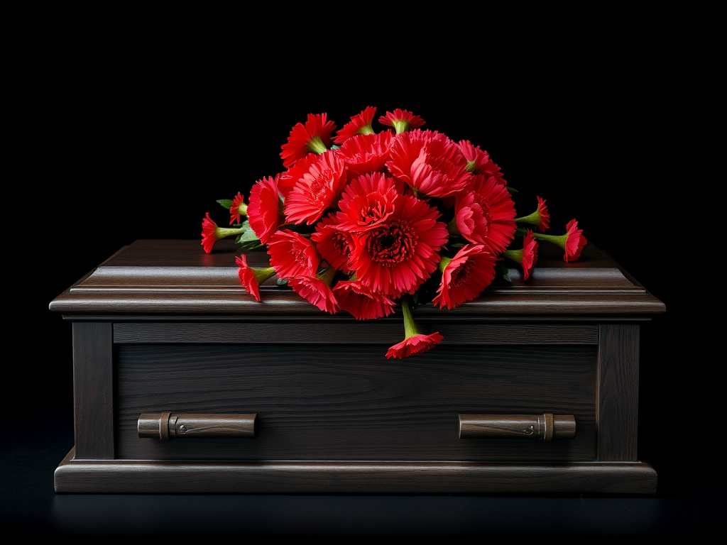 The casket was closed because of the accident that had taken his life. I rested my hand on the smooth, cold, dark wood. A spray of beautiful red carnations lay across the top.